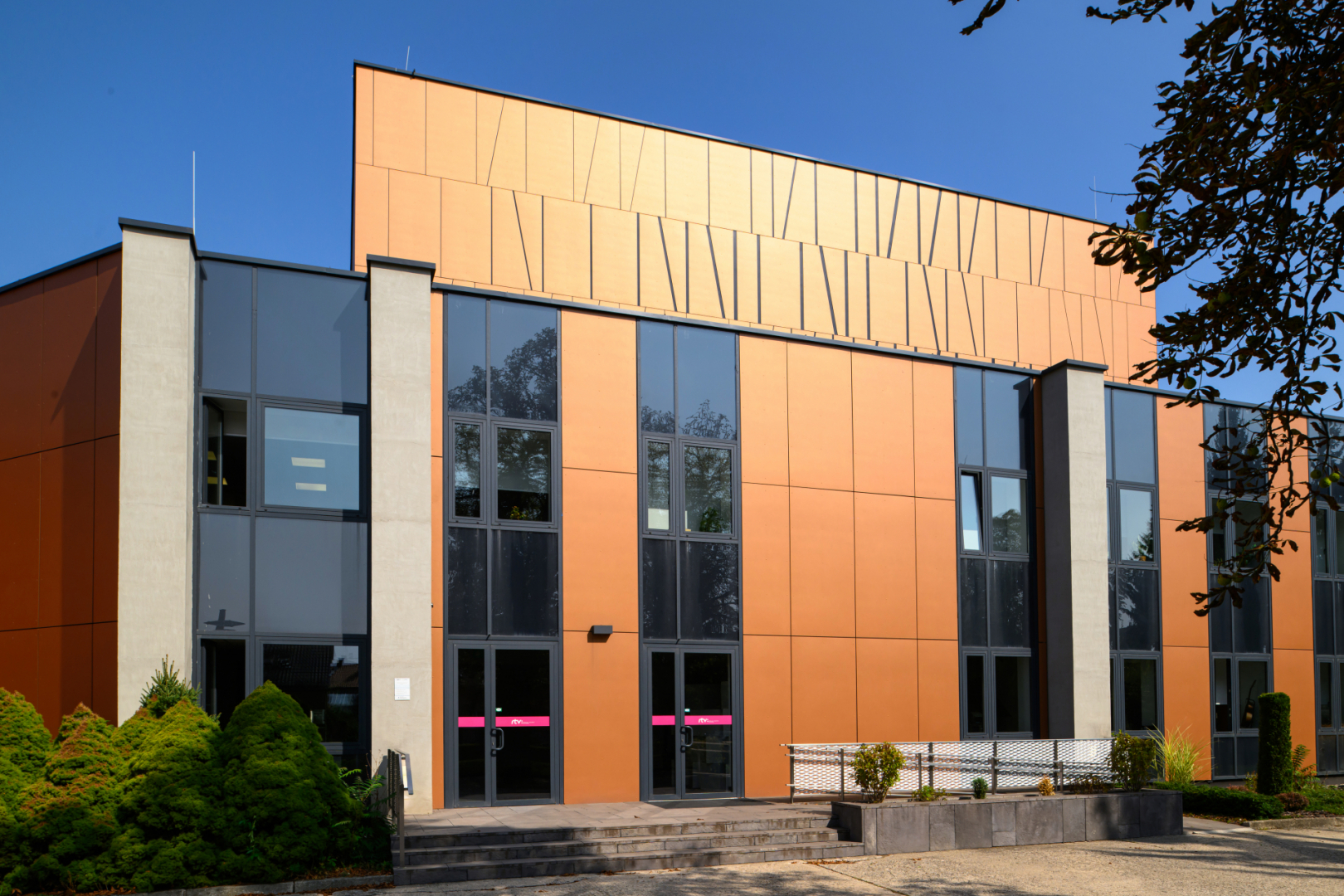 For the facade of the broadcast area, which projects above the surrounding control rooms and office spaces, naturally dried fibre cement panels of the type Reflex Amber 4071 were installed. Diagonally cut, these panels create a distinctive and dynamic visual effect that refreshes the building’s appearance while respecting its original modernist character.